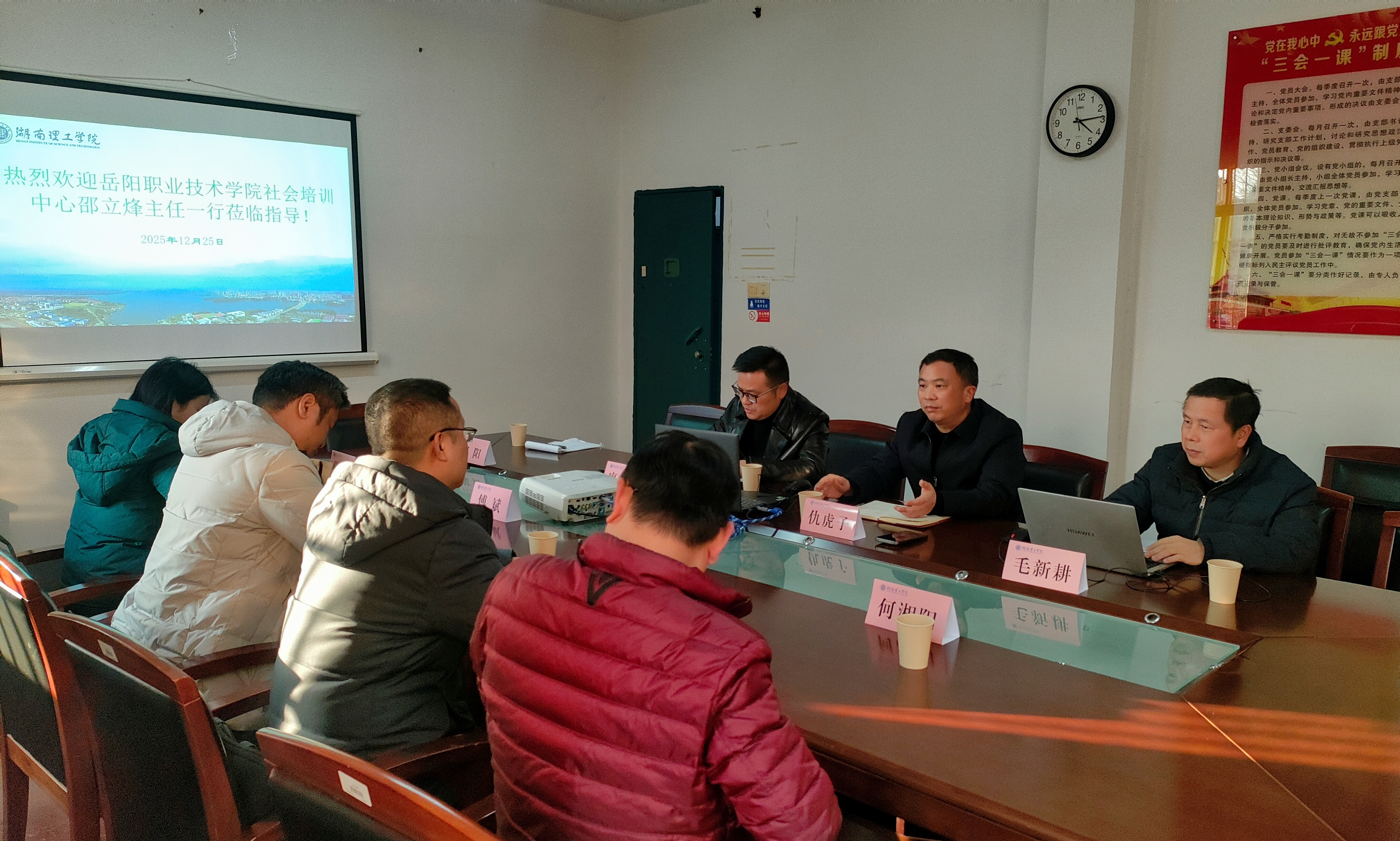 12月25日下午,岳阳职业技术公司社会培训中心邵立烽主任一行4人来公司就社会培训工作进行交流研讨。公司beat365手机版官网入口负责人及相关培训部同志参加了此次交流会。会议由仇虎子同志主持。