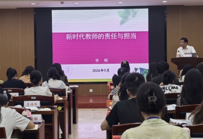 9月6日上午,2024年岳阳市君山区新教师培训班在公司17号楼报告厅举行隆重的开班典礼,出席典礼的领导有公司党委委员、副董事长丁跃浇教授、君山区教育局副局长杨嘉勇同志、教师工作与政工股股长徐满霞同志、公司beat365手机版官网入口负责人、项目管理团队同志以及来自君山区的74位新教师,典礼由毛新耕同志主持。