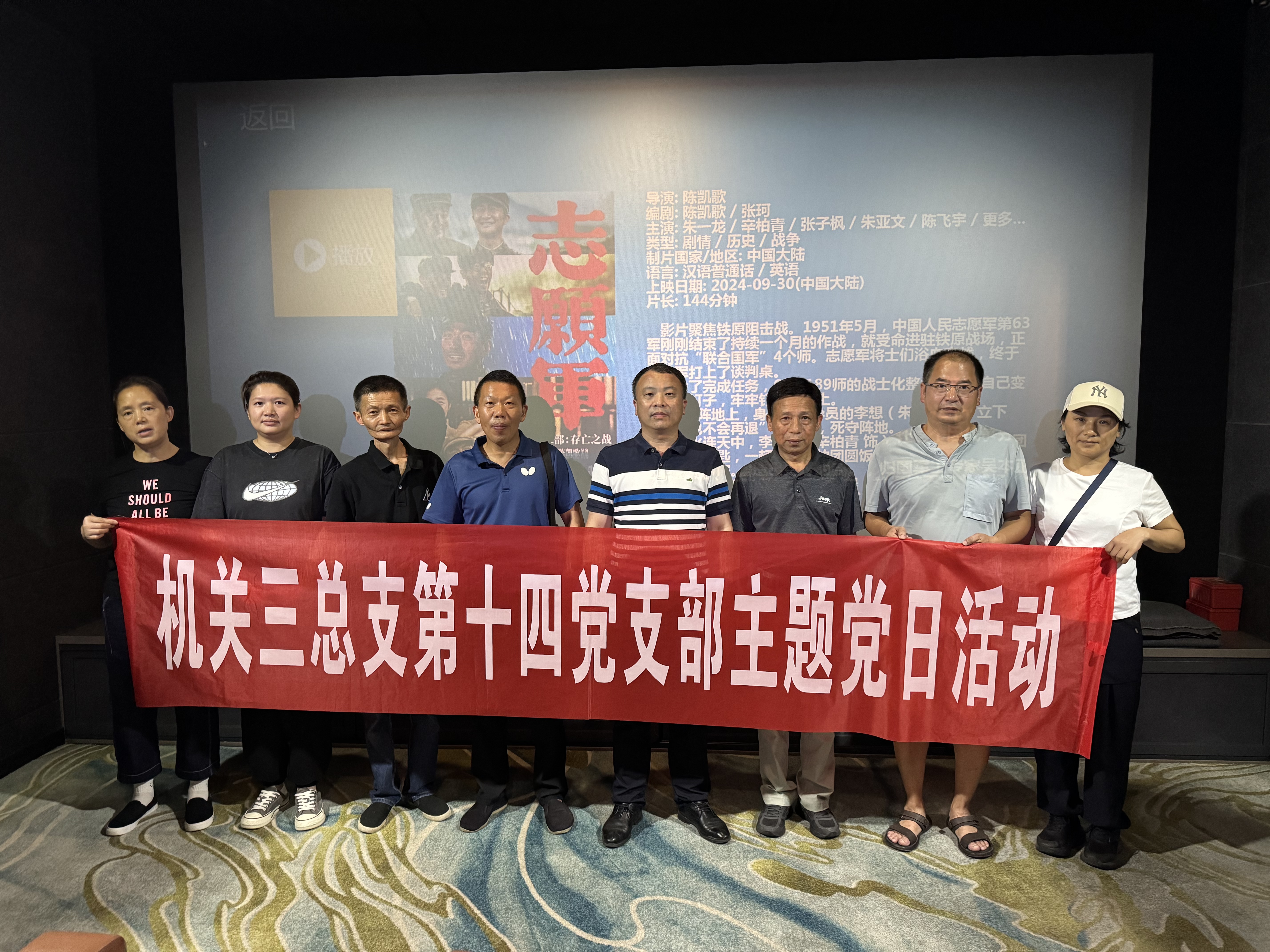 2025年6月19日,机关三总支第十四支部组织全体党员观看电影《志愿军:存亡之战》,重温红色记忆,感受家国情怀,增强党性修养,汲取奋进力量。