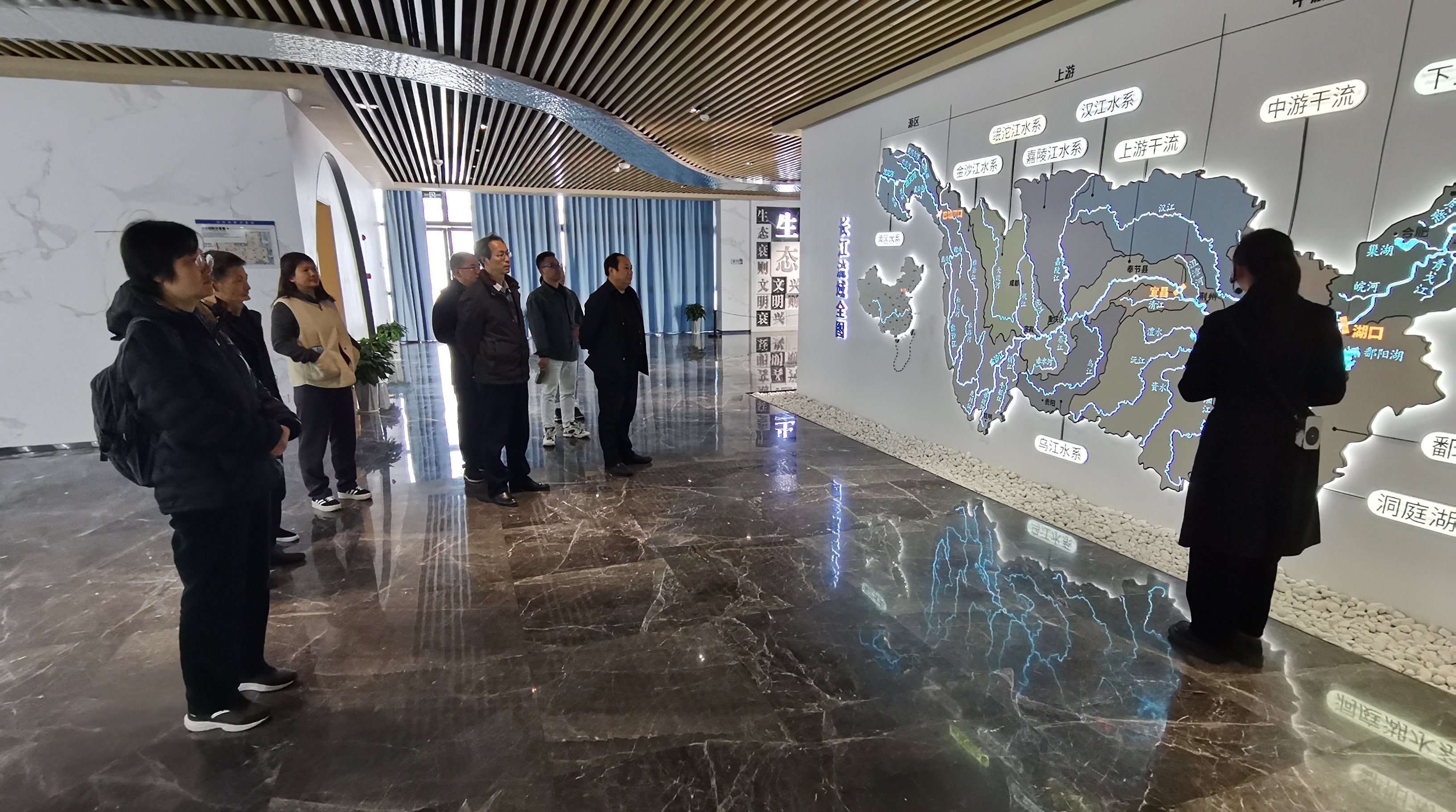 “守护好一江碧水”首倡地展陈馆以“守护好一江碧水、创建人类文明新形态”为主题,分为长江母亲之河、习近平总书记情系长江、守护好一江碧水、逐梦人类文明新形态等4个篇章,以图片、文字、影像等形式,集中展示了岳阳流水绕城、大江大湖的生态底色,大家对此感慨不已。